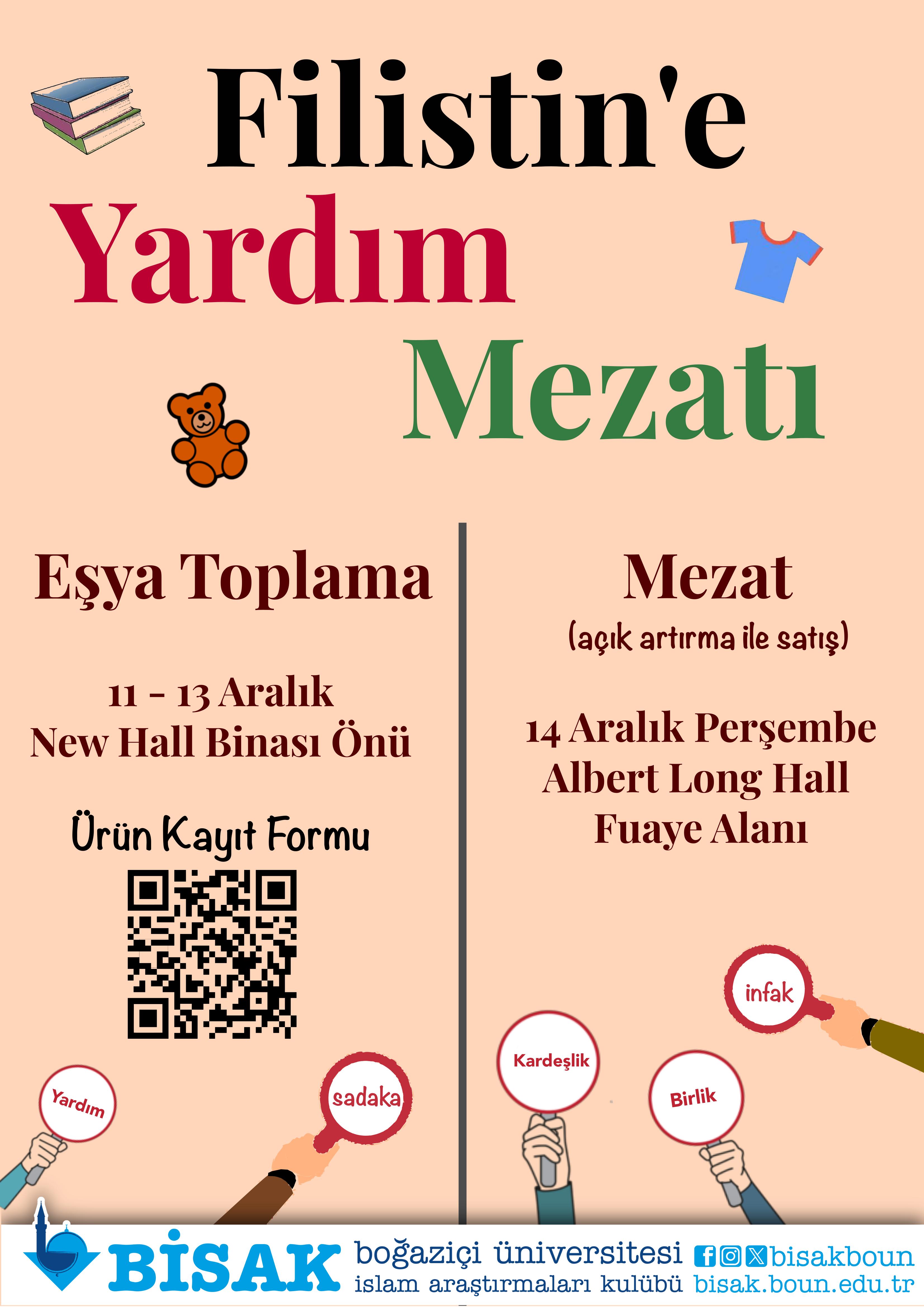 Boğaziçi Üniversitesi İslam Araştırmaları Kulübü olarak, Filistin'deki kardeşlerimize destek olmak amacıyla Filistin'e Yardım ve Mezat etkinliğimizi gerçekleştirdik.
